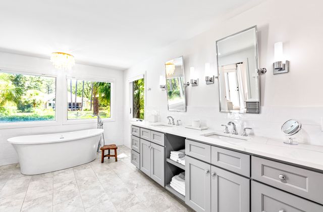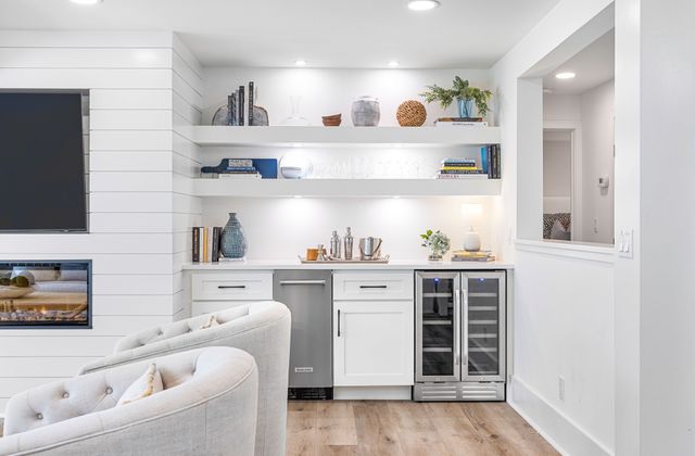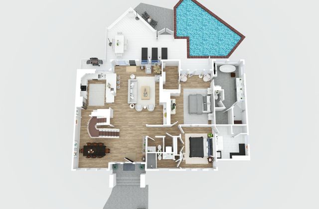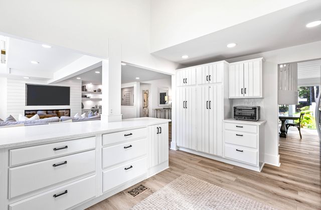 - Special features include multiple gathering areas, open kitchen, fabulous bar area with ice maker and wine fridge and upper movie/TV area with desk/work area overlooking the pool and lagoon