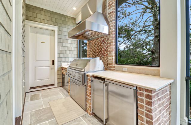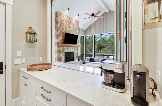 - Expansive screened porch with TV, plus amazing outdoor grilling/kitchen (Fireplace is decorative only)