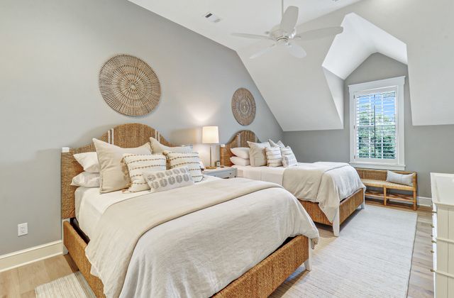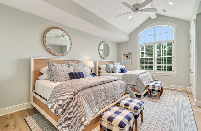 - Total of 6 Bedrooms, each with en suite baths, and 6 full and 2 half baths: Main level bedroom primary bedroom suite; upper level includes 2 king bedrooms with 2 queens each. Carriage house over garage includes 2 twins plus large sectional sofa and mini kitchen and full bath. (Total beds include 3 Kings, 4 queens, and 2 twins)