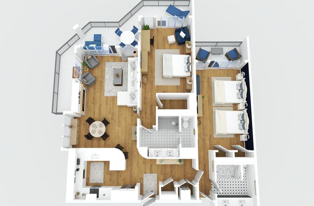 The spacious living area features a 65" LCD flat screen HDTV and fabulous new furnishings, all in the BESTNEST style.