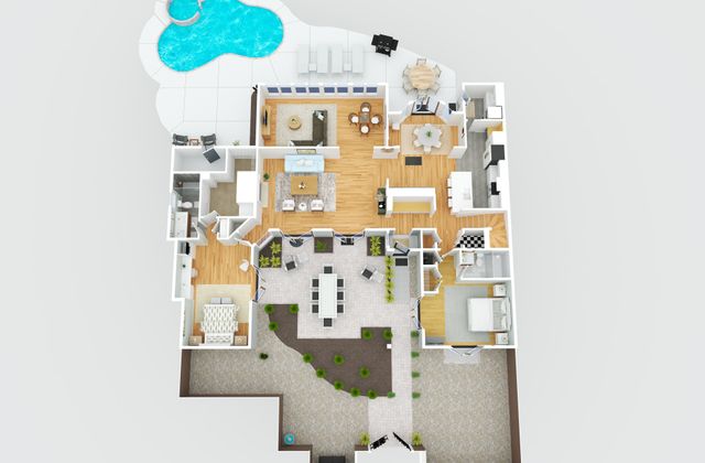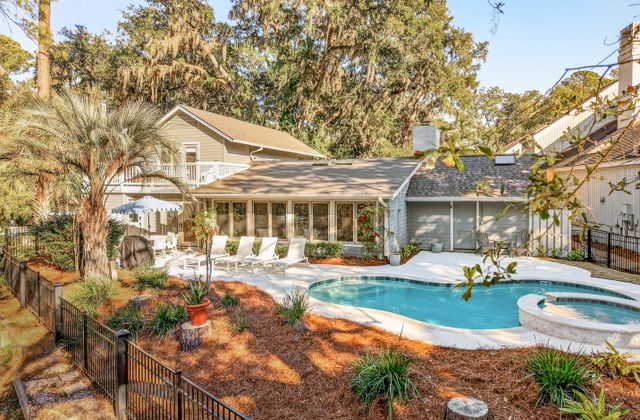 - Enjoy multiple gathering areas including private pool area, fabulous enclosed courtyard with dining table, serene porch, and spacious second floor balcony with lagoon views.
