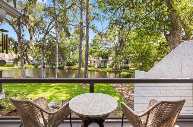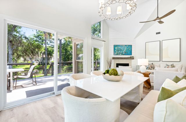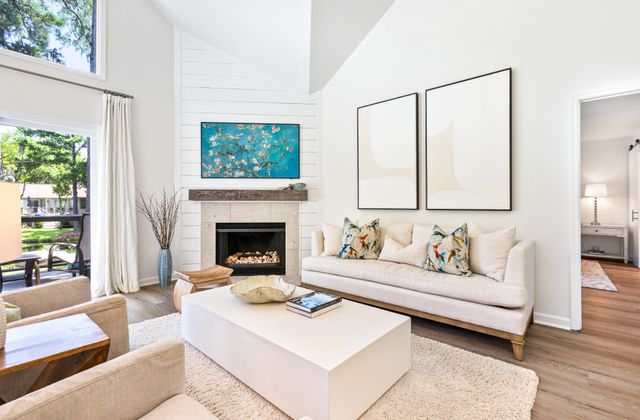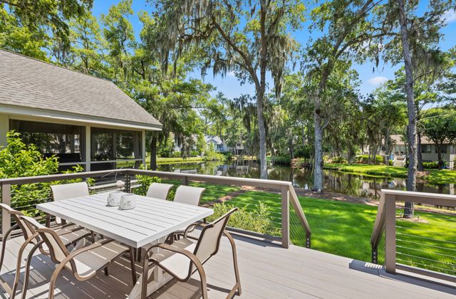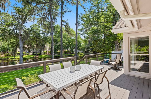- Open living/dining areas open onto large deck with peaceful lagoon view, plus remote controlled gas fireplace.