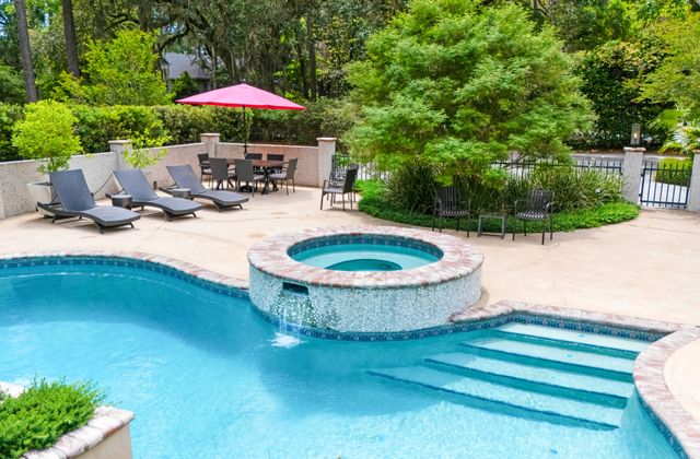 - Private, heatable pool, and custom evening lightscaping for optimum outdoor ambiance