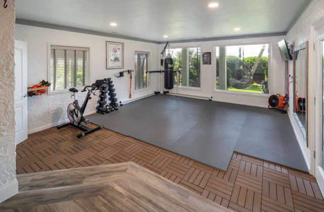 - Fabulous fitness room/home gym and ping pong in garage.